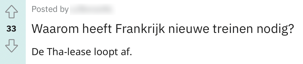 12. Ook de Franse trein leent zich perfect voor slechte dad jokes, maar het kan ook zijn dat het gewoon niet de juiste de Thalys.