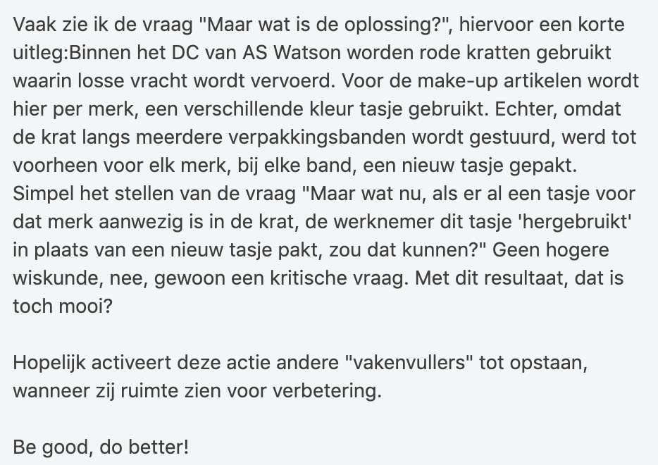 In Nederland werken duizenden vakkenvullers in allerlei bedrijven. Katja bewijst dat je als vakkenvuller met een plan een grote impact kan hebben op het bedrijf waar je werkt.