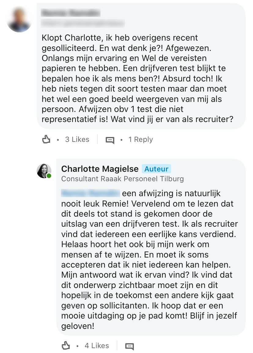 1. In dit bericht deelt Charlotte waarom een sollicitant wordt afgewezen.