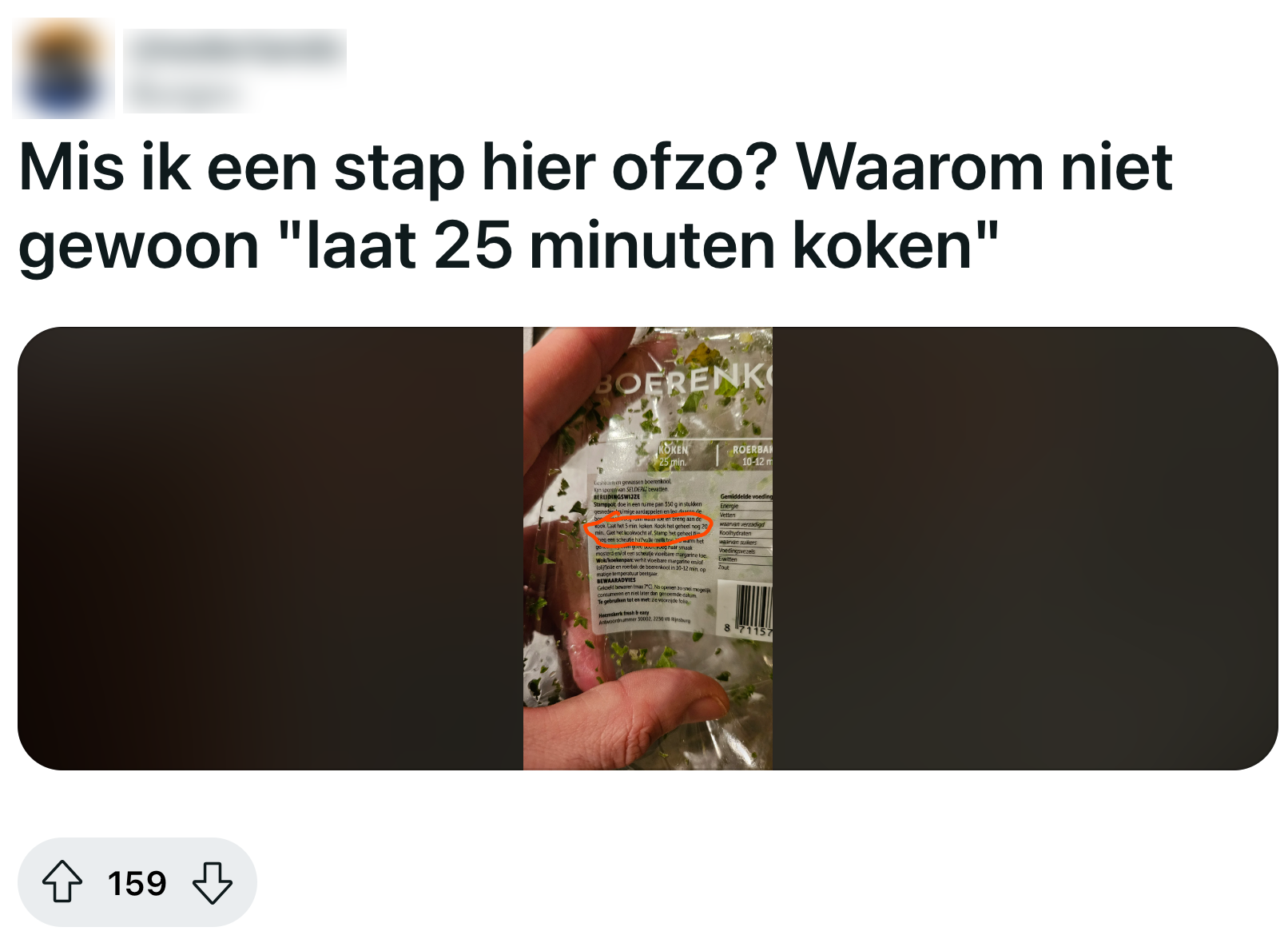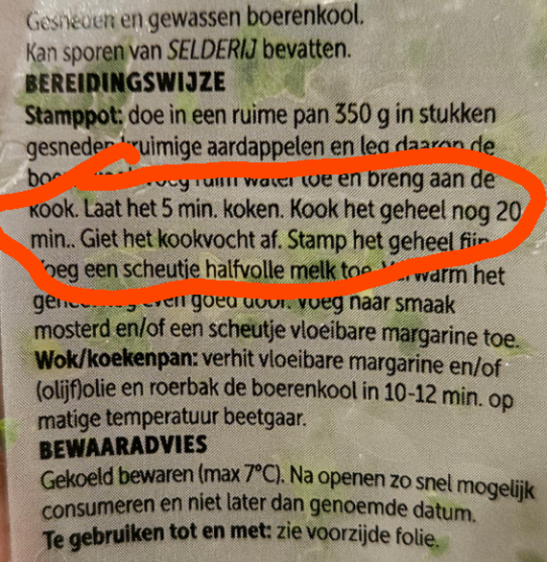 Met dit koude weer komt de Hollandse keuken met stamppot natuurlijk het beste tot zijn recht. Niets is lekkerder dan in de winter lekker een paar kilo aardappelen en liter jus samen te prakken tot een heerlijk smeuïg prutje. Dan is het wel zo fijn als de instructies van het recept gewoon duidelijk zijn. Dat is bij deze zak boerenkool absoluut niet het geval, en mensen raken compleet in de war.