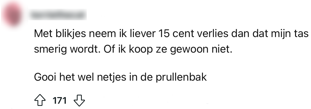 5. Sommige mensen zijn vooral bang voor een plakkerige tas en vinden dat het statiegeld niet waard.