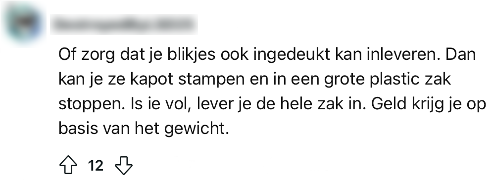 6. Een platgestampt blikje zou door sommigen ook eerder worden ingeleverd.