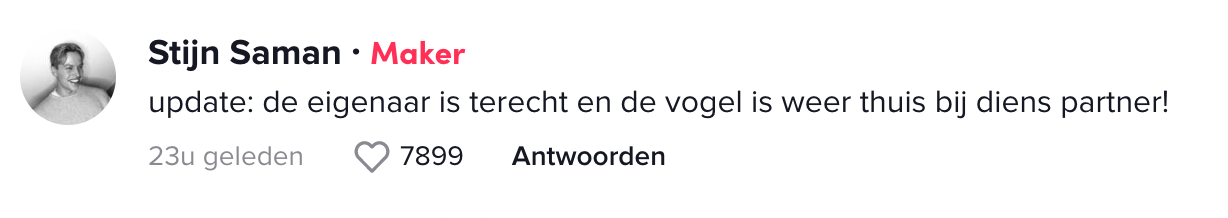 7. Het was een groot avontuur voor Stijn, maar gelukkig is de vogel weer terug bij z’n eigenaar..