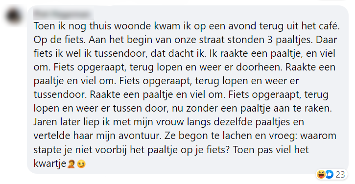 8. We sluiten af met een situatie waaraan je al kan lezen dat er te diep in het glaasje is gekeken.