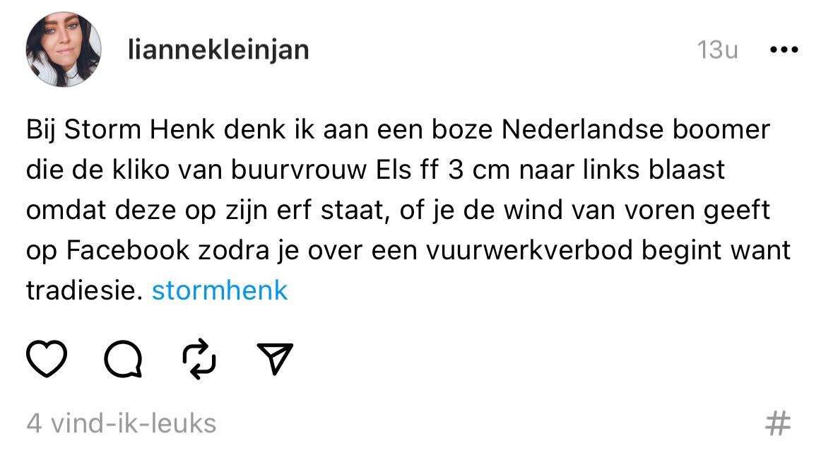 Als je vannacht niet uit je bed geblazen bent, dan mag je van geluk spreken. Terwijl het nieuwe jaar nog maar nét begonnen is, hebben wij Nederlanders het eerste obstakel van het jaar alweer overwonnen: storm Henk. Het KNMI gaf misschien code oranje af, maar de naam Henk geven wij Nederlanders eerder een dikke red flag. En om deze mening winden zij op social media geen doekjes.