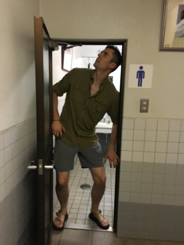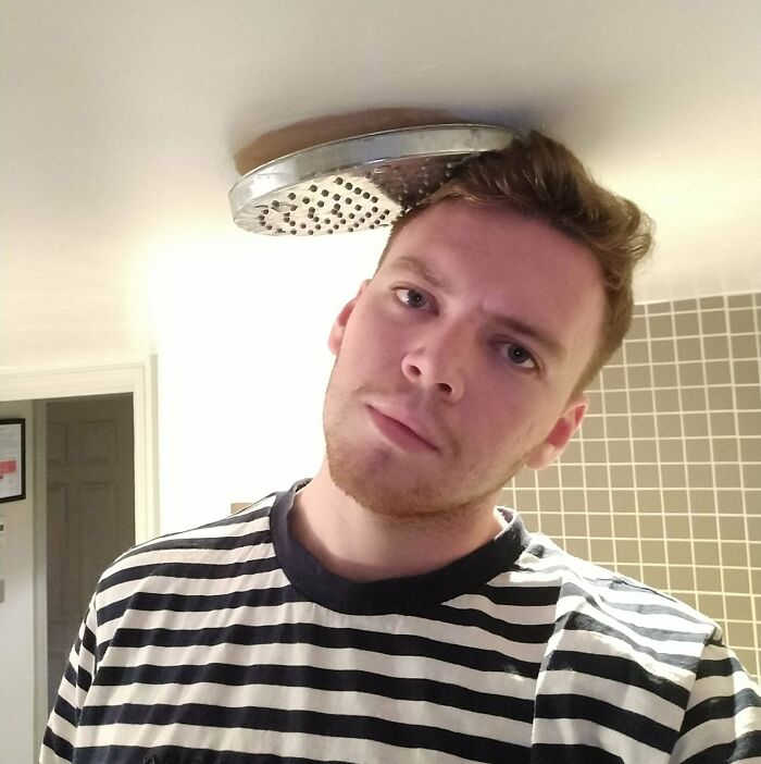 8. Wanneer de douchekop in het plafond zit en je er nóg niet onder past, weet je dat je een probleem hebt.