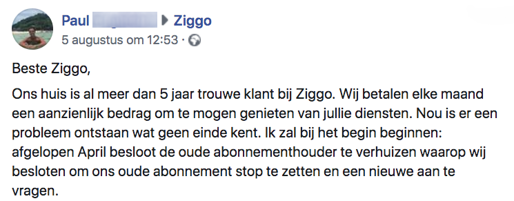 1. Paul deelt z’n verhaal op de pagina van Ziggo.