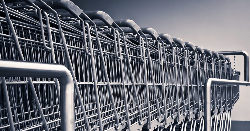 Een gepensioneerd echtpaar komt naar buiten en wil het winkelwagentje terugzetten in de rij wanneer ze een jongen zien die er net één wil pakken.