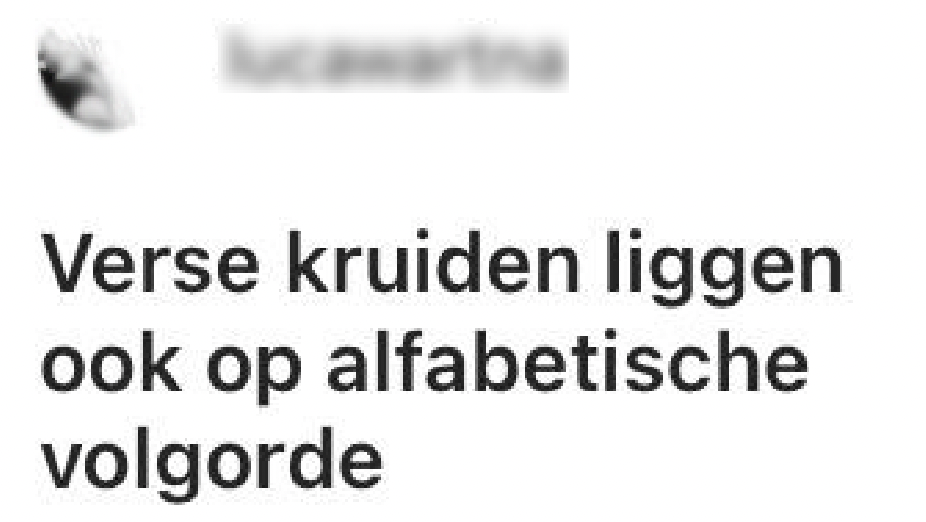 12. Na de kruidenpotjes, blijken ook de verse kruiden op alfabetische volgorde te liggen.