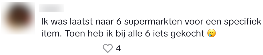 Als je speciaal naar de supermarkt racet voor dat ene specifieke product dat je nodig hebt voor je viergangendiner, is het aardig vervelend als je bij aankomst naar een leeg schap staat te kijken. Natuurlijk baal je vooral van het feit dat je met lege handen naar huis moet, maar er zit nóg een ongemakkelijk nadeel aan deze situatie. Mirna deelt deze in een video en krijgt veel bijval.