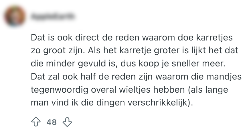 7. Een ander heeft het idee dat de plek van de mandjes zo bepaald is om het leven van je medeklant makkelijker te maken.