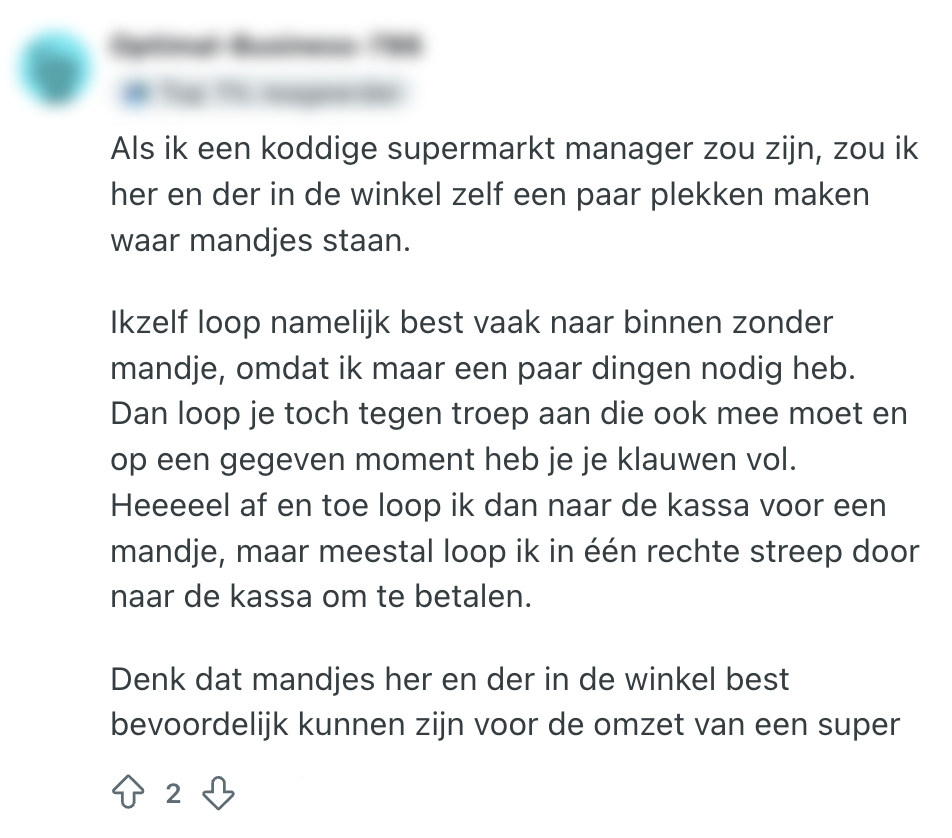 Vlak voordat je de supermarkt binnenloopt, sta je voor een zenuwslopend dilemma: neem je wel of geen mandje mee? Je moet snel beslissen, want zodra de poortjes achter je dichtklappen, is er geen weg meer terug. Met hangende pootjes en volle handen terugkomen omdat je tóch een mandje nodig blijkt te hebben, is geen optie. Een klant vraagt zich al tijden af waarom de mandjes in veel supermarkten vóór de poortjes staan, en stelt deze vraag op Reddit. Het resultaat? Een mand vol speculaties, oplossingen en tips.
