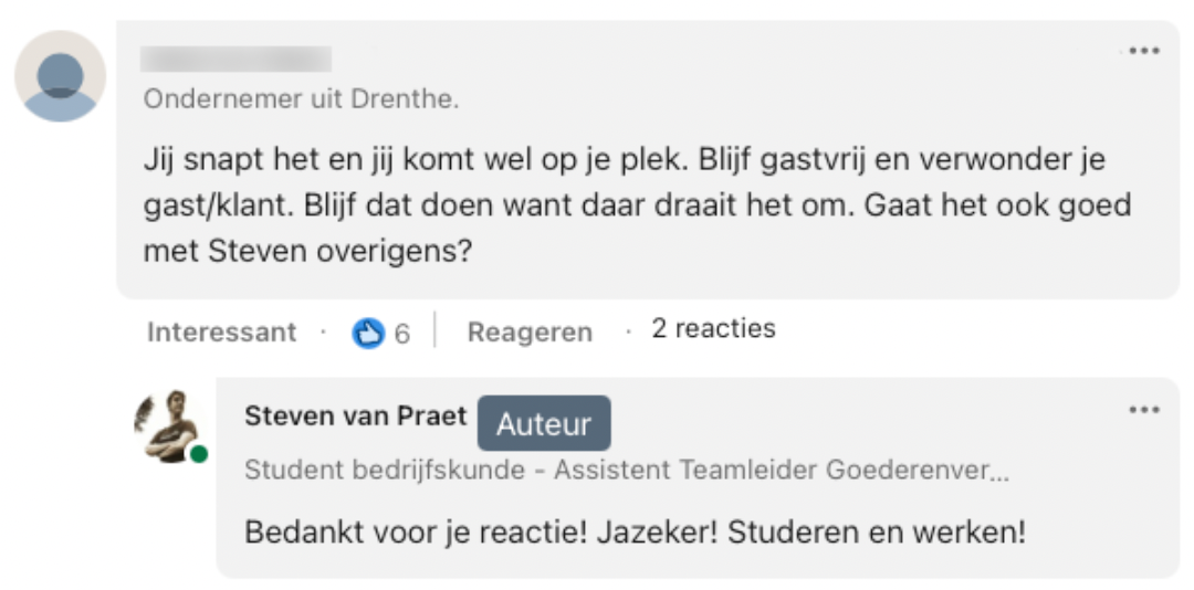 4. Veel mensen reageren vol lof op het bericht van Steven.