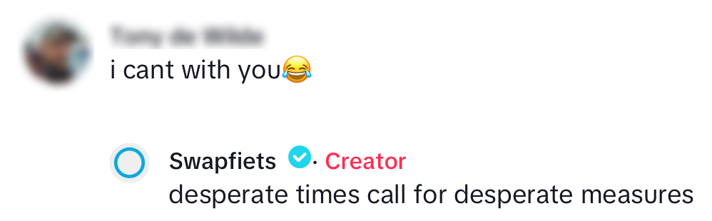 6. Deze Swapfiets-klant vraagt zich wel af of de fietsen dit zelf ook leuk zullen vinden…