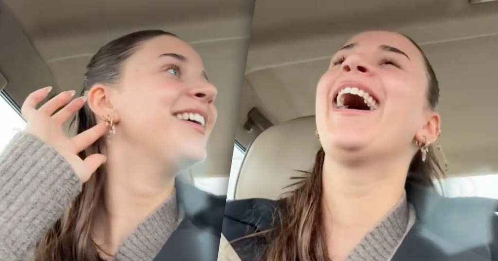 Vrouw krijgt seintje in file om raampje omlaag te do...
