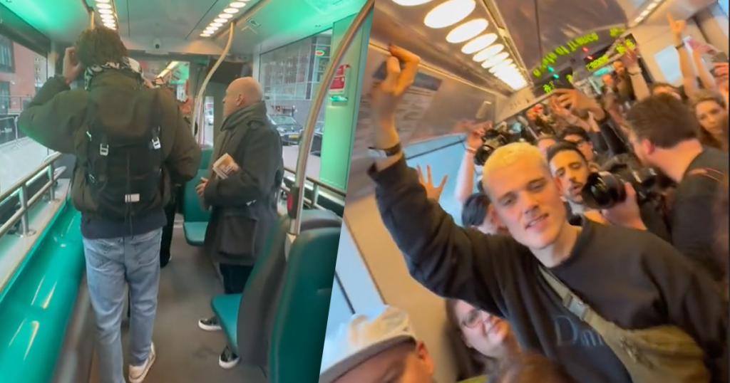 Reizigers gaan spontaan door het geluid tijdens...