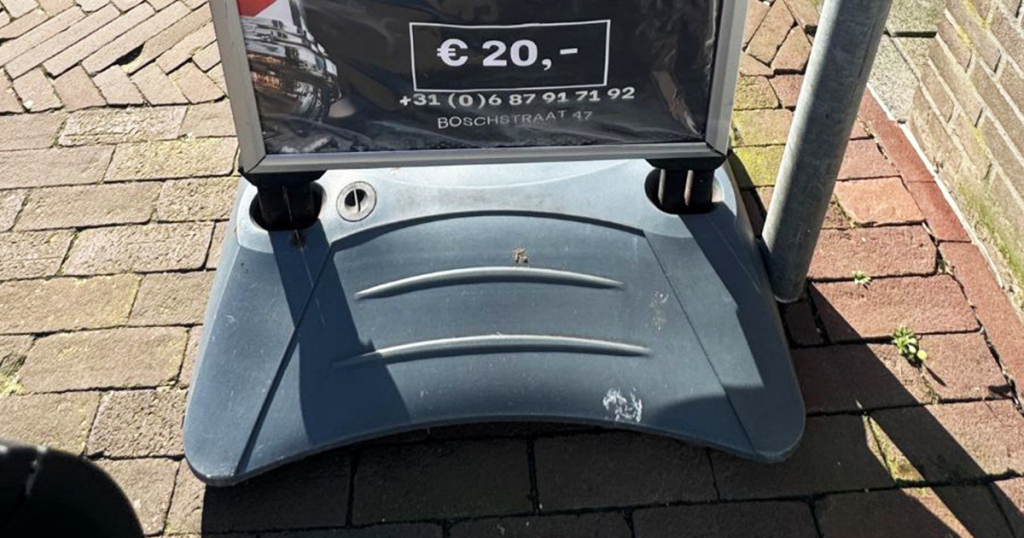 Eef loopt langs bord voor kapperszaak en kan ni...