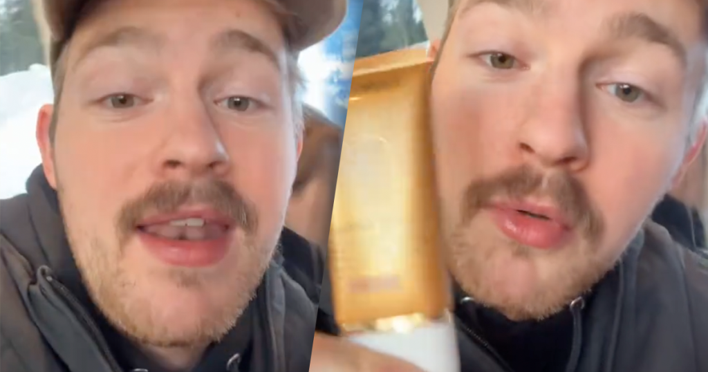 Wintersporter smeert zonnebrand op gezicht maar dat ...