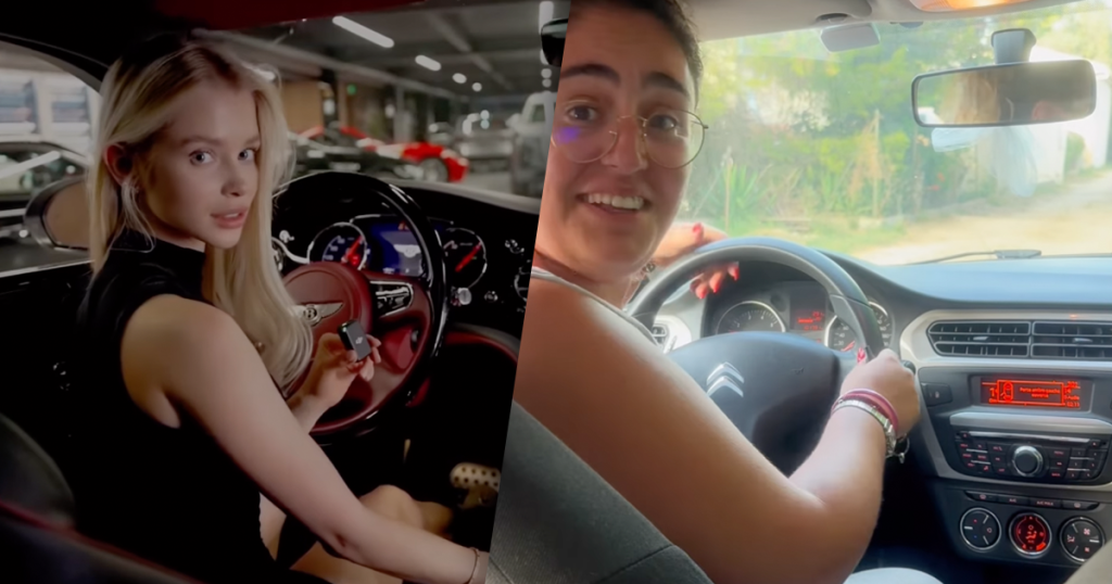 Vrouw steekt de draak met Bentley reclame en he...