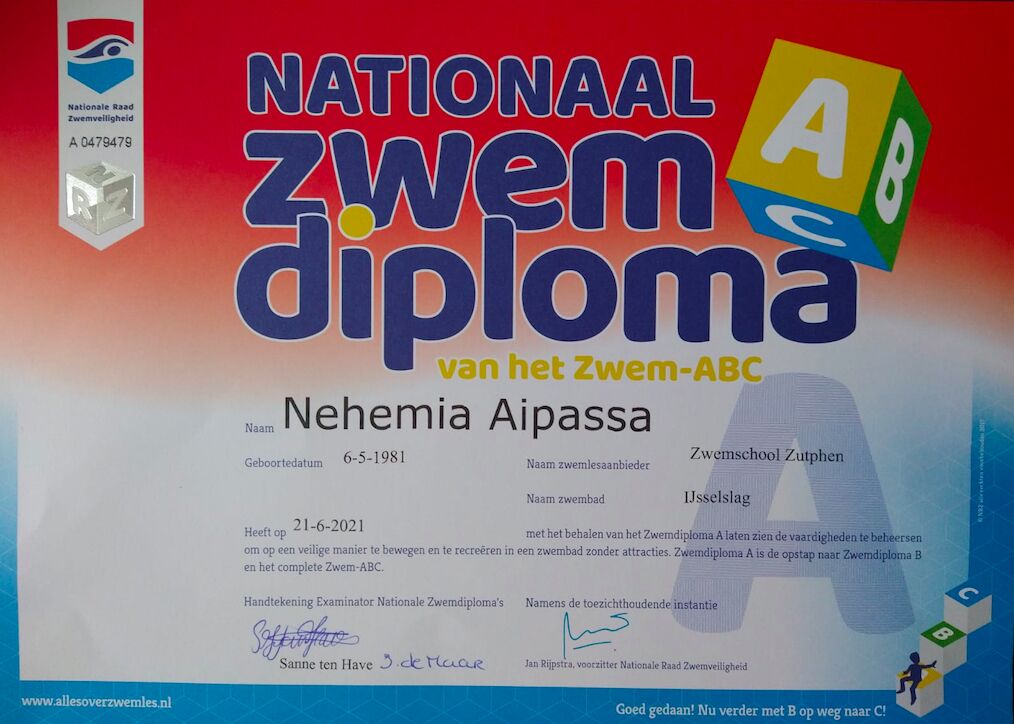 40-jarige Nehemia haalt eerste zwemdiploma en deelt ...