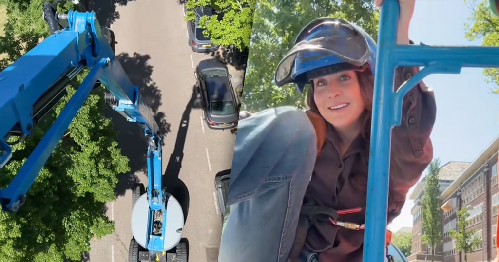 Nina stapt op bedieners van hoogwerker af en stelt g...