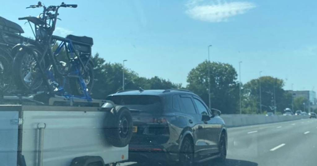 Automobilist spot op de snelweg aanhanger met fatbik...