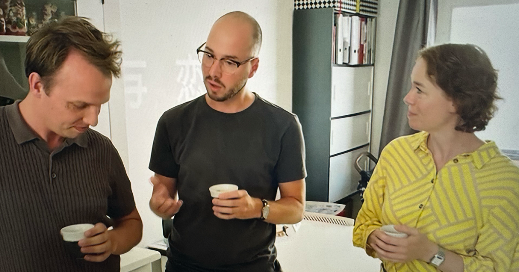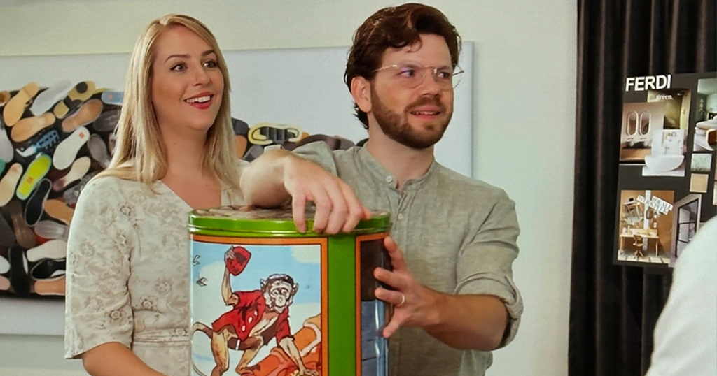 Kopen Zonder Kijken-deelnemers zitten met de handen ...