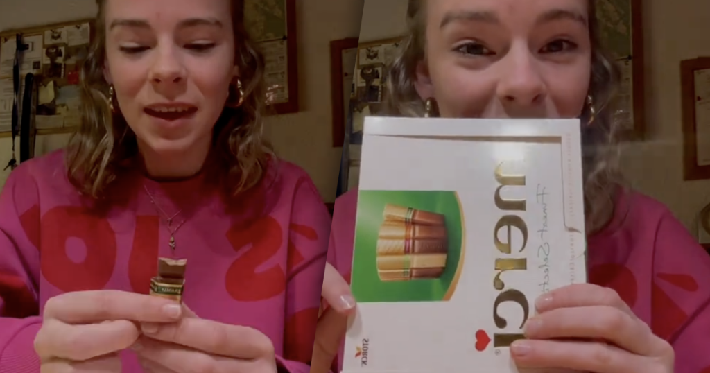 Zo hoor je Merci-chocola écht te openen en er g...