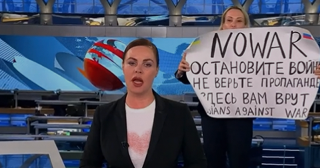 Russische journaliste Marina protesteert tegen de oo...