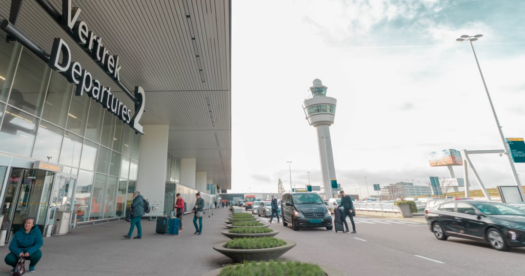 Passagier stijgt met vliegtuig vanaf Schiphol o...