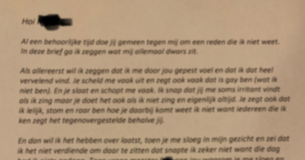 12-jarige schrijft brief aan haar pester en die komt...