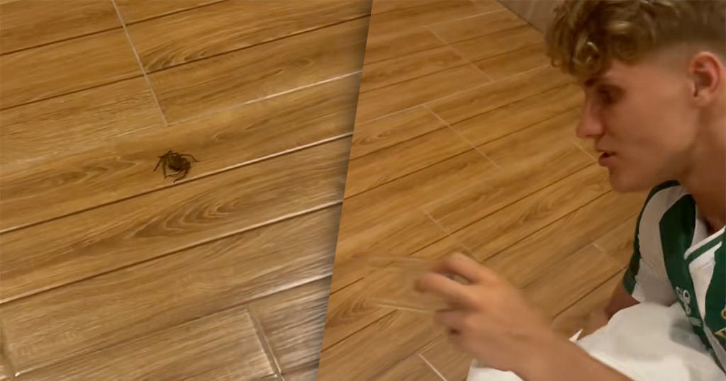 Man vangt spin op onhandige manier en werkt zic...