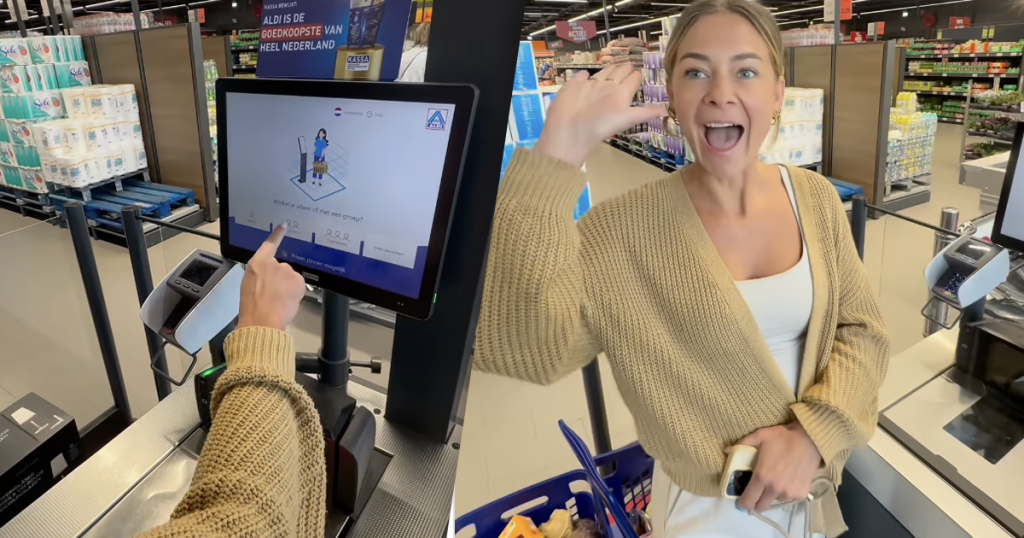 Klant test vernieuwde zelfscankassa ALDI en staat pe...
