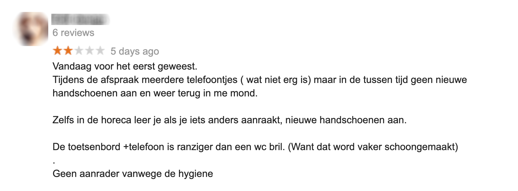 1. Deze tandartspatiënt was niet tevreden, en liet dit duidelijk merken in een review.