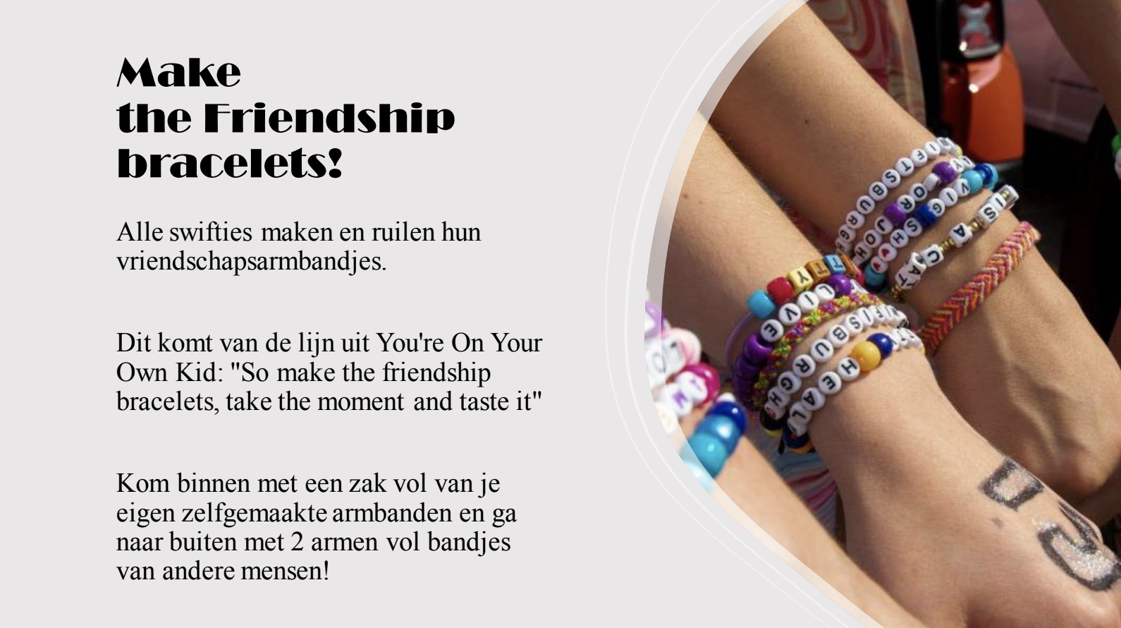 Heb je de strijd op Ticketmaster deze week overleefd en een ticket voor The Eras Tour van Taylor Swift kunnen bemachtigen? Gefeliciteerd! Maar voordat je volgende zomer helemaal los kan gaan op Shake It Off en wat traantjes kan wegpinken tijdens Love Story, is het belangrijk dat je goed voorbereid bent. Swifties hebben namelijk een hoop onderonsjes en je wil natuurlijk niet voor paal staan door die niet te kennen. Daarom wil de twaalfjarige dochter van Bart haar vader nu alvast alle ins en outs van het concert bijbrengen – en dat doet ze in Style.