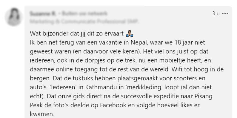 Hé, jij daar. Zit je lekker te scrollen? Scrol dan meteen even door dit blog heen. Hierin vertellen we je over een boodschap van Marsha. Zij liet zich inspireren door de mensen in Nepal die een rijk leven leiden, zonder continu op hun telefoon te zitten. Haar boodschap werd breed ontvangen en misschien leg ook jij na het lezen ervan je telefoon even weg.