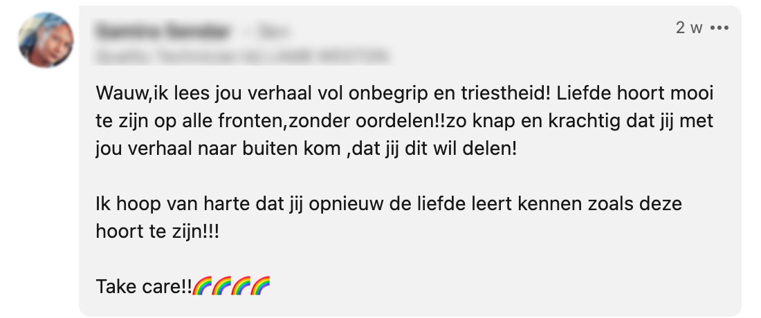 5. Tess ontvangt veel reacties van mensen die het een indrukwekkend verhaal vinden.