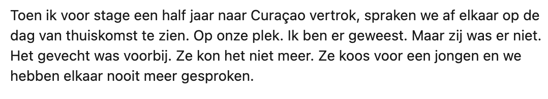 1. Tess had alle moed bij elkaar verzameld en wilde de wereld laten zien met wie ze samen was. Helaas werd dat niet door iedereen geaccepteerd.