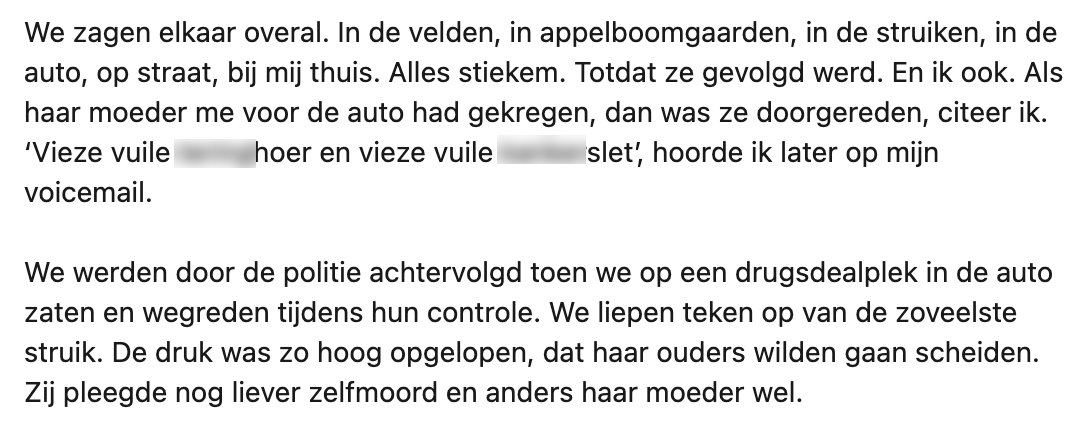 1. Tess had alle moed bij elkaar verzameld en wilde de wereld laten zien met wie ze samen was. Helaas werd dat niet door iedereen geaccepteerd.