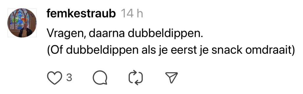 2. Maar sommigen vinden dubbeldippen gewoon zo ontzettend vet, dat ze geen kans onbenut laten om hun snacks opnieuw door de saus te halen.