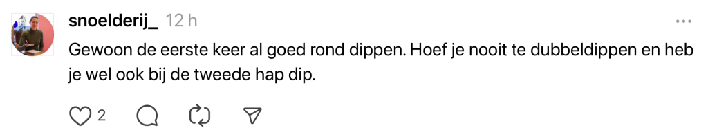 2. Maar sommigen vinden dubbeldippen gewoon zo ontzettend vet, dat ze geen kans onbenut laten om hun snacks opnieuw door de saus te halen.