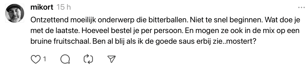 Bij een verjaardag, uitje met collega’s, borrel met vrienden in de kroeg of gewoon wanneer je ademt: de bitterbal is altijd een must. Net als de kaassoufflé, frikandel, bamihap en (vegetarische) nuggets, die allemaal onderdeel zijn van de bruine fruitschaal. Nederlanders houden nu eenmaal van snacks en grijpen dus iedere gelegenheid aan om de frituurpan aan te slingeren. Heerlijk. Totdat je in je ooghoek ziet dat Jan-Kees van financiën met zijn gore, ongewassen klauwen in de schaal graait en óók nog voor een driedubbel-dip in de mayo gaat. Sommige snackers snappen er blijkbaar de ballen van en daarom heeft Nina de etiquette nog effe op een rijtje gezet. Al is niet iedereen het daarmee eens…