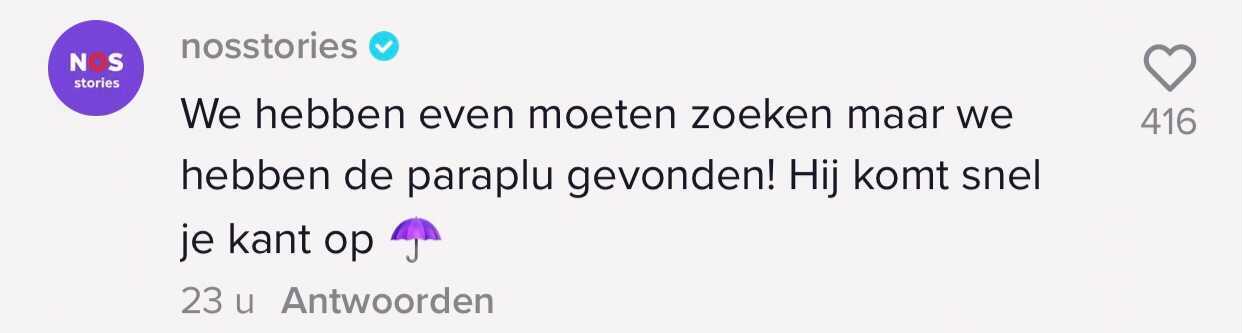 8. De NOS geeft aan de paraplu nu dan écht te gaan opsturen.
