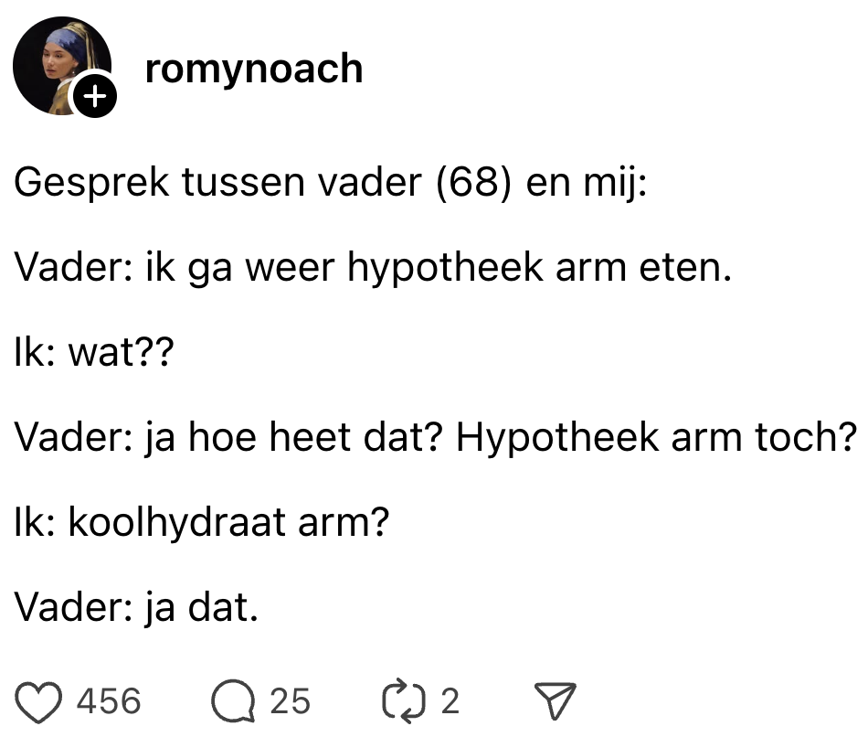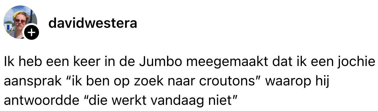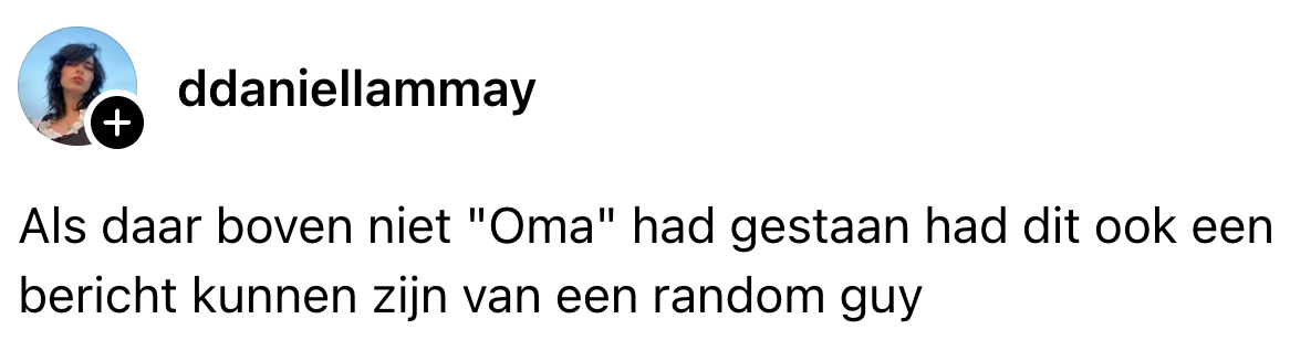 2. Stagiaire Lucie kon hard lachen om deze Threads-post, die staat als een huis.