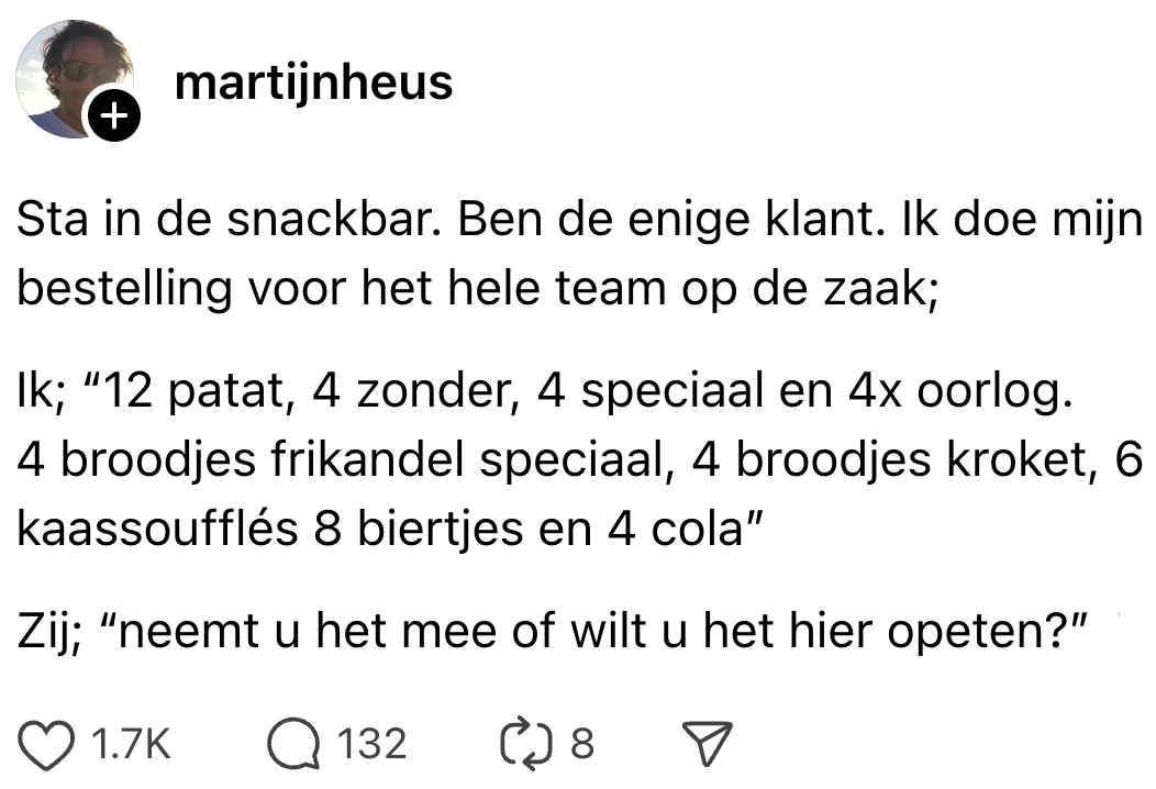 2. Stagiaire Lucie kon hard lachen om deze Threads-post, die staat als een huis.