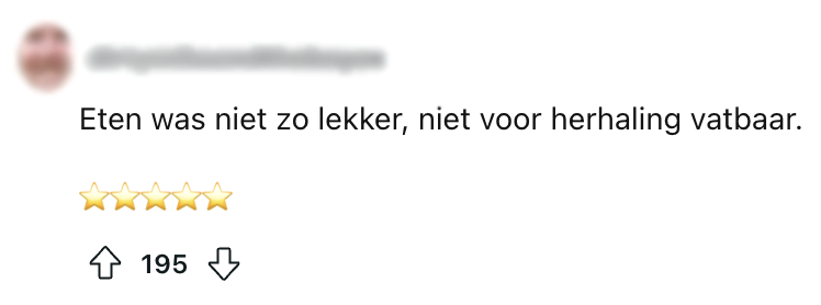 6. Wie het briefje over de Thuisbezorgd-review ook geschreven mag hebben: dit is vast niet helemaal wat diegene ermee wilde bereiken.