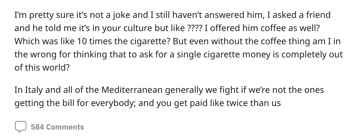 2. Het gezellige momentje gaat in rook op wanneer de Italiaan een merkwaardige Tikkie ontvangt.