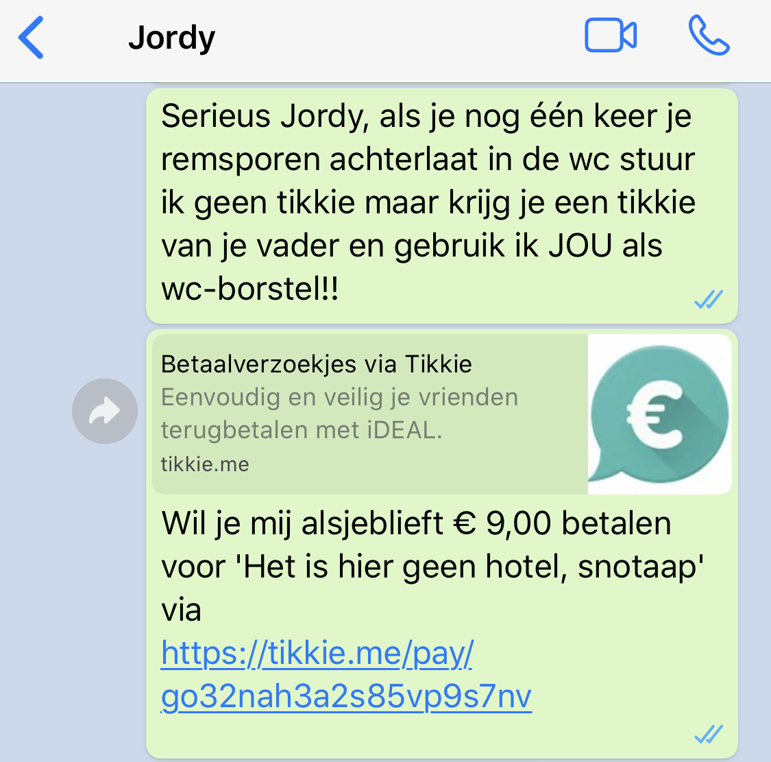 Waaraan herken je nu écht een Nederlander? Aan het zeuren om het weer? Ja, tuurlijk. Maar wat dacht je van de Nederlander die een Tikkie stuurt naar zijn beste vriend, omdat die vriend een halfuurtje zijn paraplu mag lenen. Dát is de Nederlander in optima forma. Om onszelf te kunnen zijn, kunnen we niet meer zonder Tikkie. En hou je vooral niet in hè. Bij twijfel of het wel gepast is, denk dan maar aan deze lijst met Tikkies die gewoon prima kunnen.