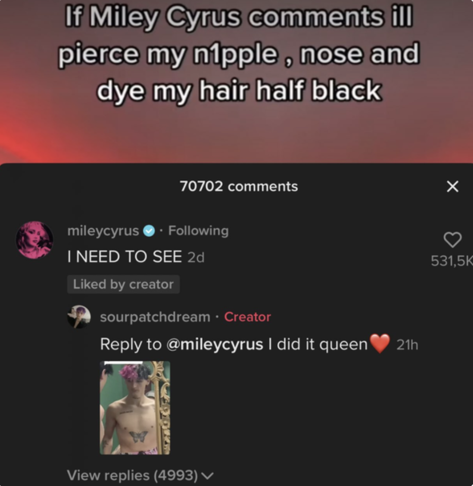3. Ook deze TikTok’er heeft een plan voor als Miley reageert.