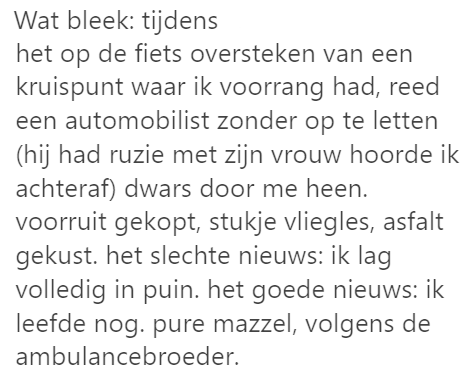 2. Het eerste wat hij wilde weten is of hij nog wel leefde.